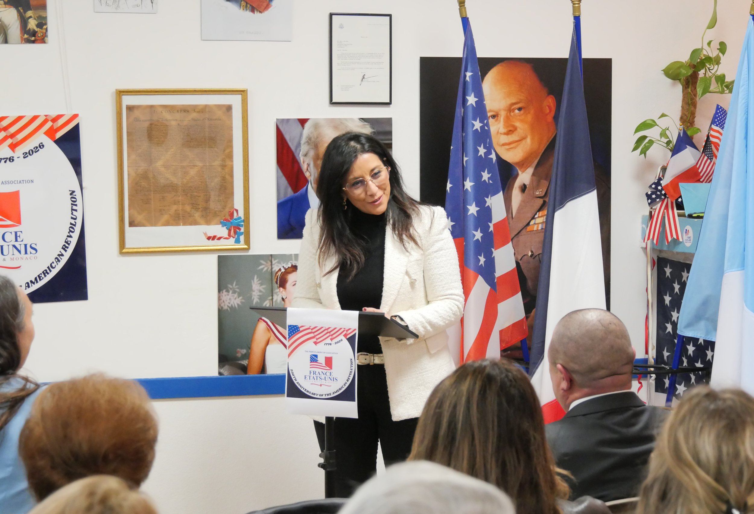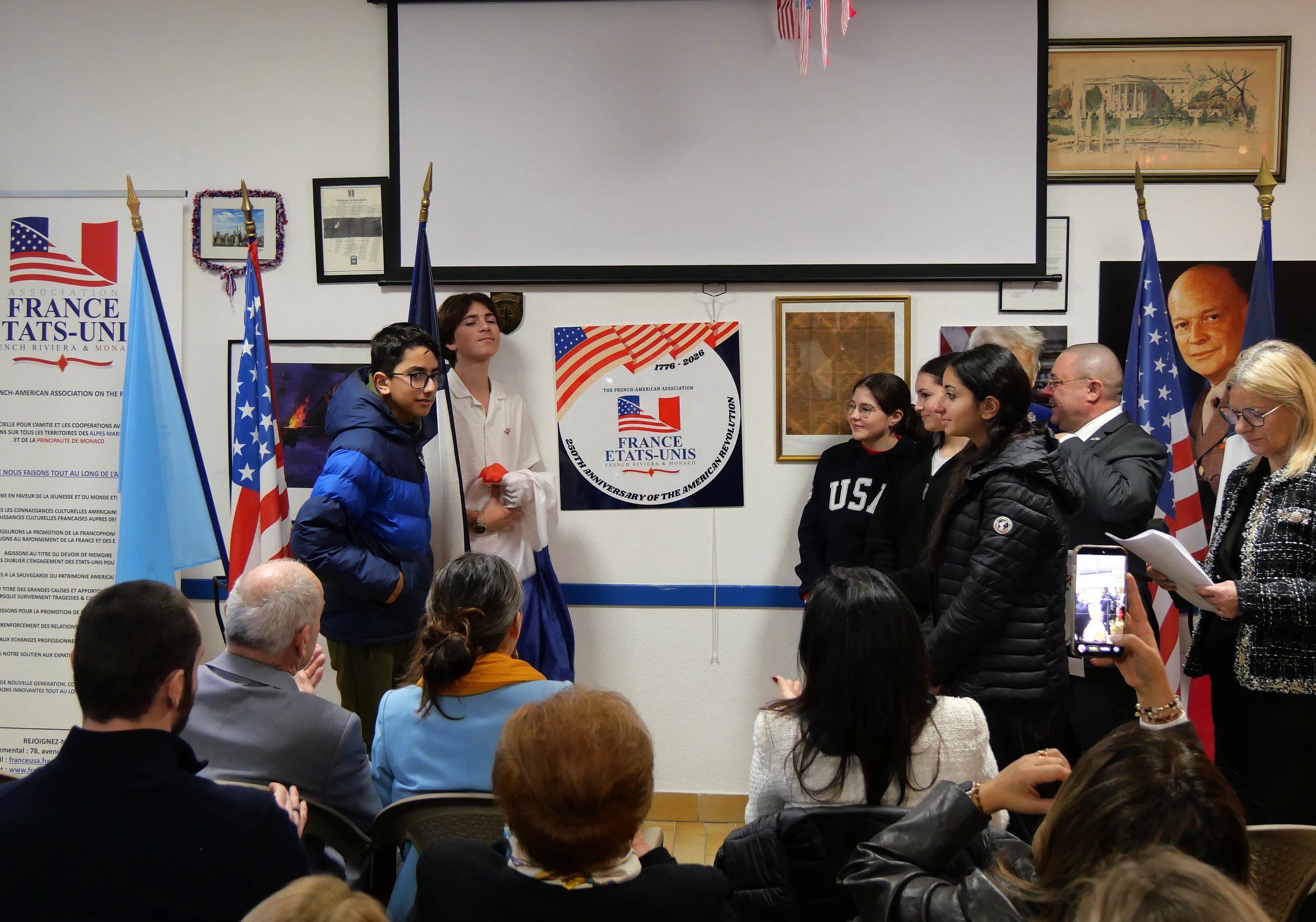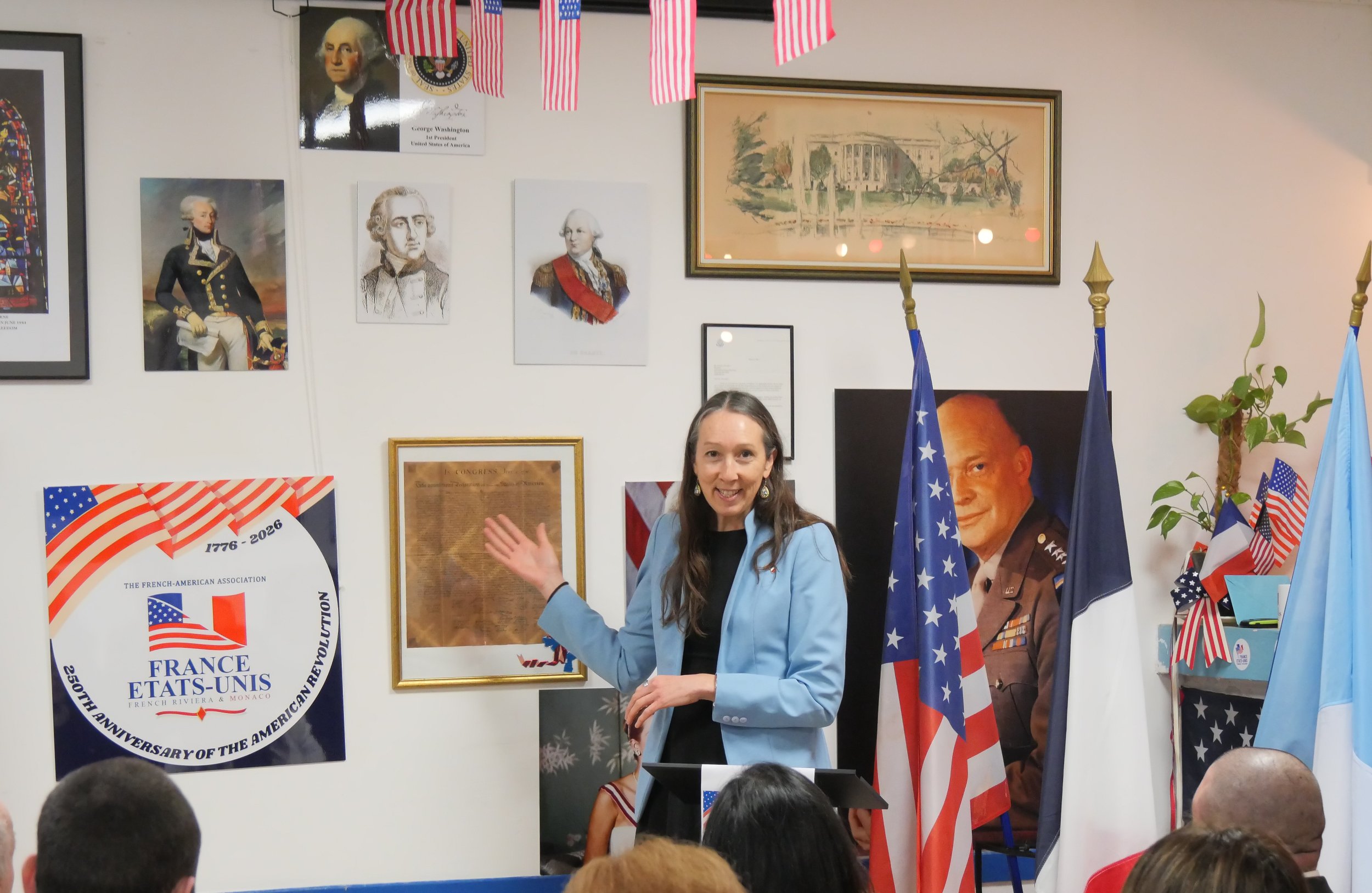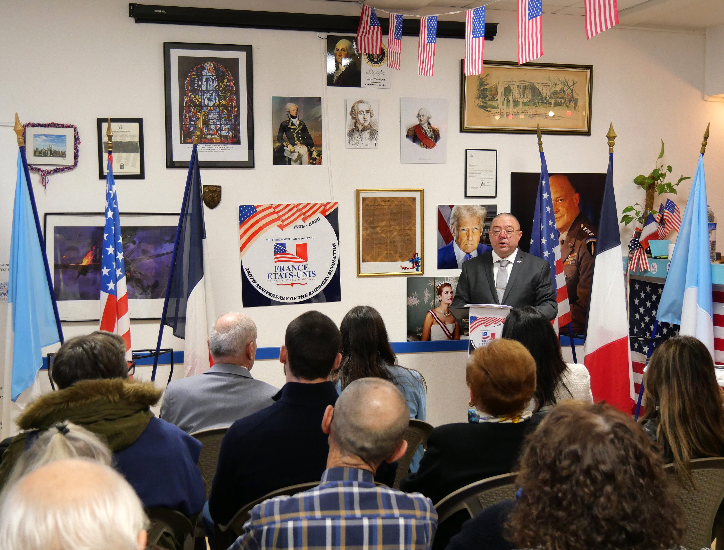 Samedi 24 janvier, l’association France États-Unis - French Riviera & Monaco a célébré le lancement officiel de l’année du 250e anniversaire de la révolution américaine ayant conduit à l’indépendance des États-Unis. La cérémonie s’est déroulée au sein de leur local, situé sous le gymnase du Careï, en présence d’autorités officielles dont Jessica Huaracayo, consule générale des États-Unis d’Amérique pour le Sud de la France et la principauté de Monaco, et la conseillère municipale en charge du patrimoine culturel et représentant le maire de Menton, président de la Communauté de la Riviera française.