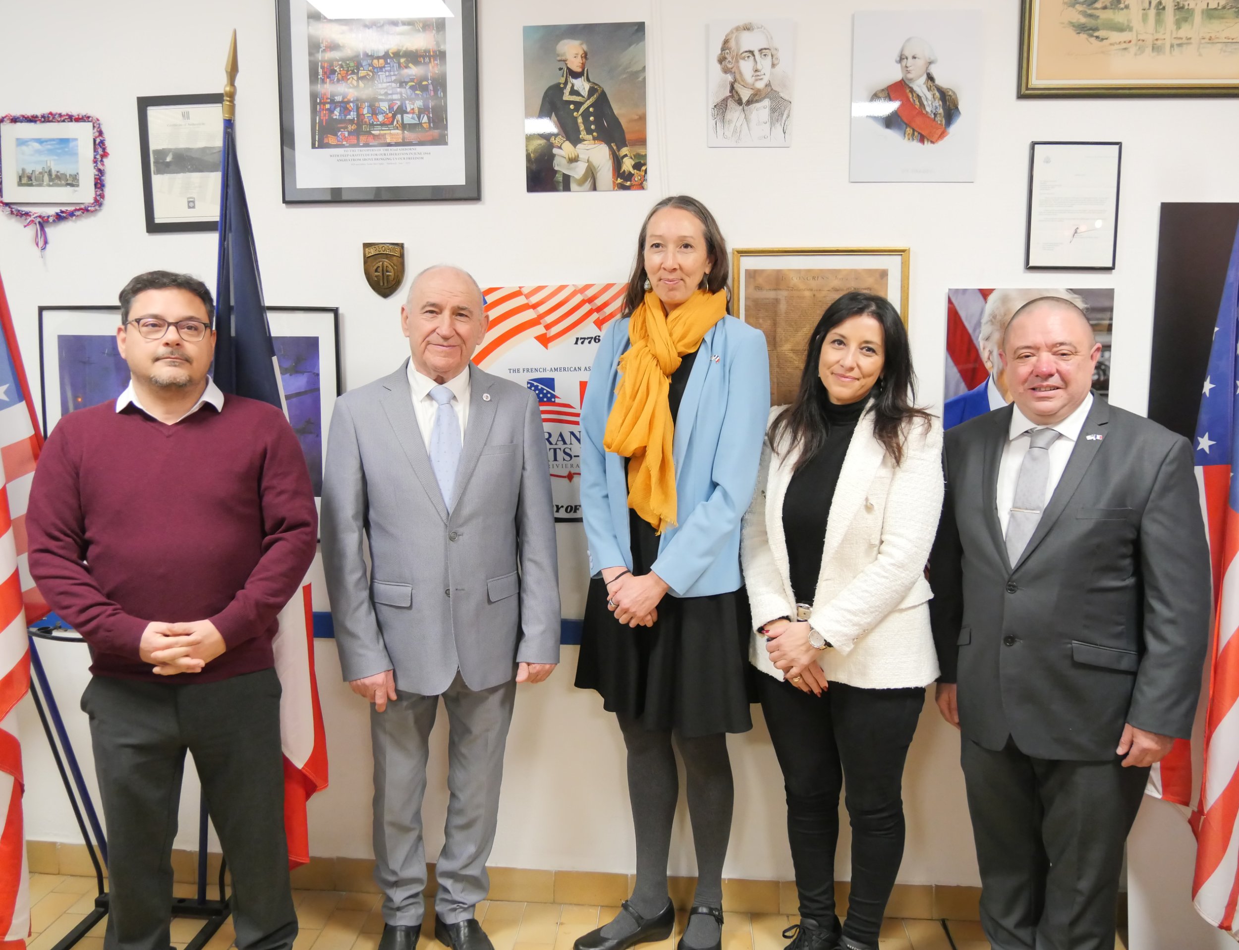 Un hommage a ensuite été rendu aux quatre grandes figures de la révolution américaine : George Washington, 1er président des États-Unis, le marquis de La Fayette, le général comte de Rochambeau et l’amiral François Joseph Paul de Grasse. Leurs portraits se trouvent désormais sur le mur d’honneur du local de l’association.