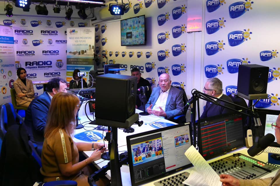 Yves Juhel, maire de Menton et président de la Communauté de la Riviera française (Carf), et Jean-Claude Alarcon, adjoint délégué au sport, à la jeunesse et à la vie des quartiers, étaient aujourd’hui dans le studio de RFM (Radio fréquence méditerranée) dans le cadre du lancement du CEJ à Menton.