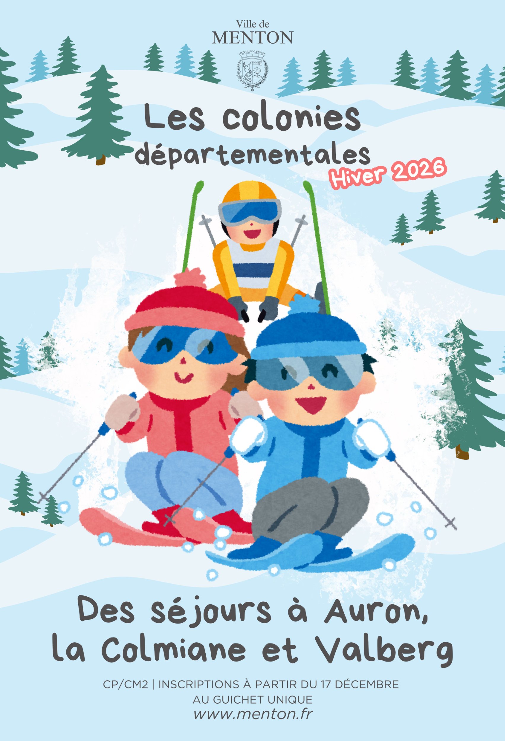 Inscriptions à partir du 17 décembre, au Guichet unique (13 rue de la Marne) Sans rendez-vous. Places limitées.