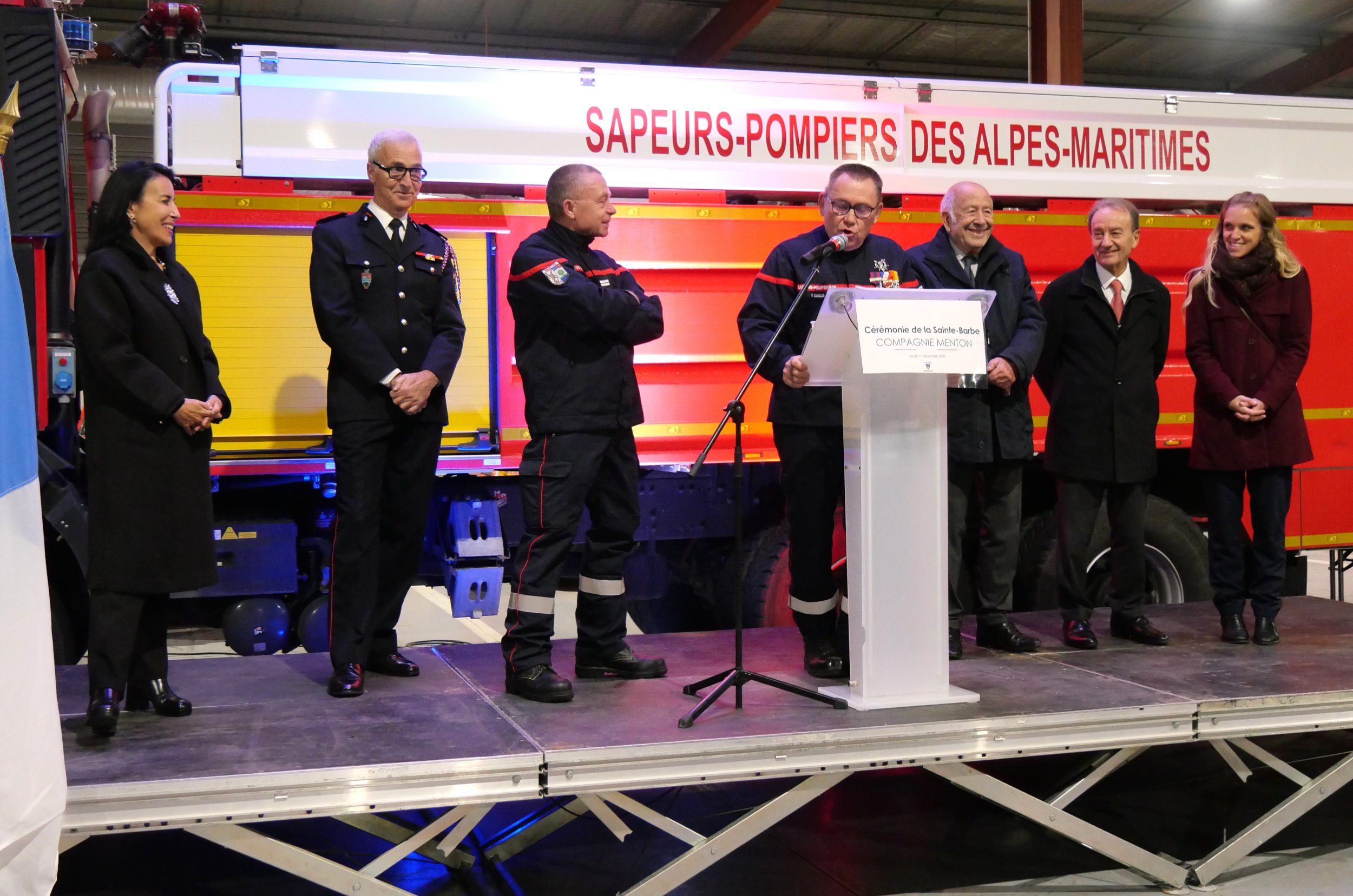 La cérémonie s’est déroulée en présence du maire de Menton, président de la Communauté de la Riviera française (Carf), accompagné de la 1ère adjointe, de la députée de la 4e circonscription des Alpes-Maritimes, de la conseillère départementale représentant le président du département des Alpes-Maritimes, de plusieurs maires de la Carf et du directeur départemental des services d’incendie et de secours des Alpes-Maritimes.